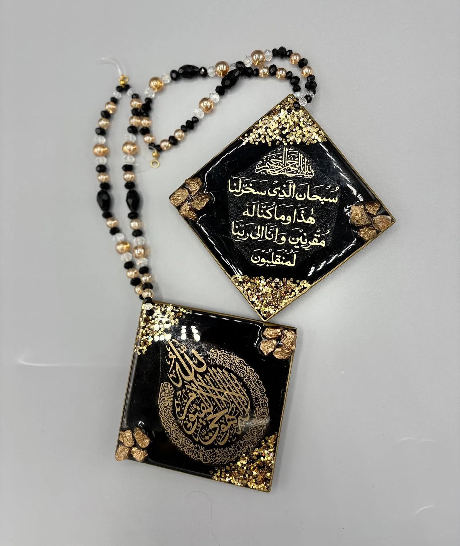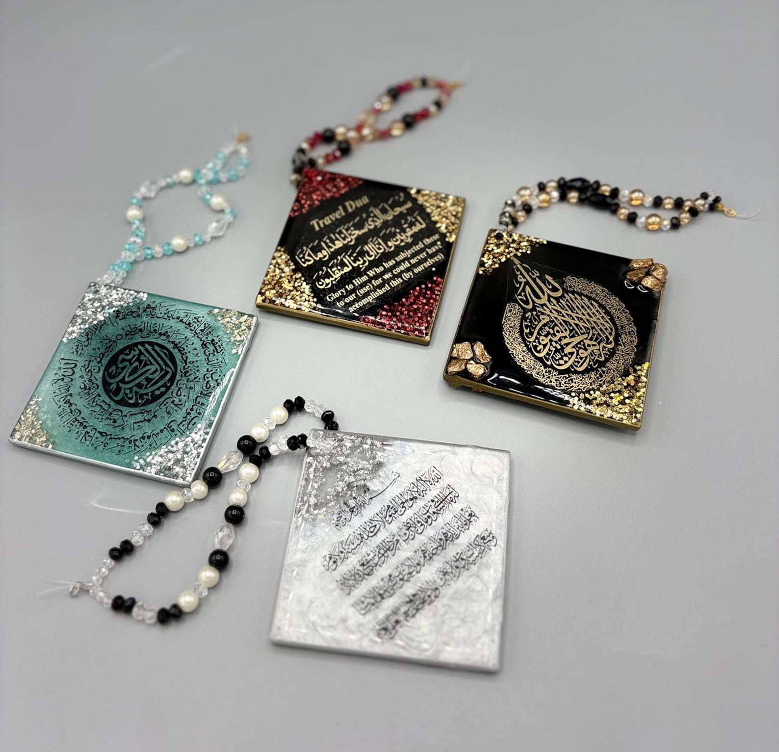 Handmade resin and Safar Duaa car hangings