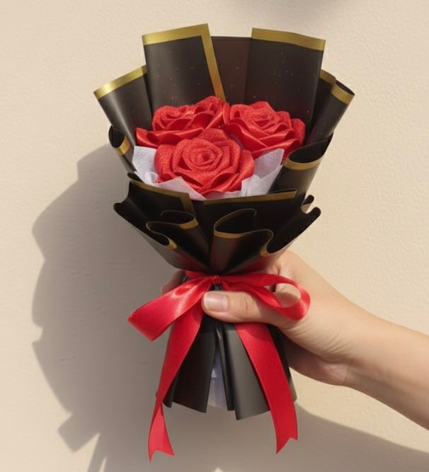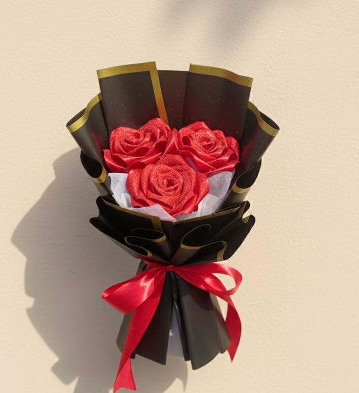 Red And Black 3 Rose Bouquet