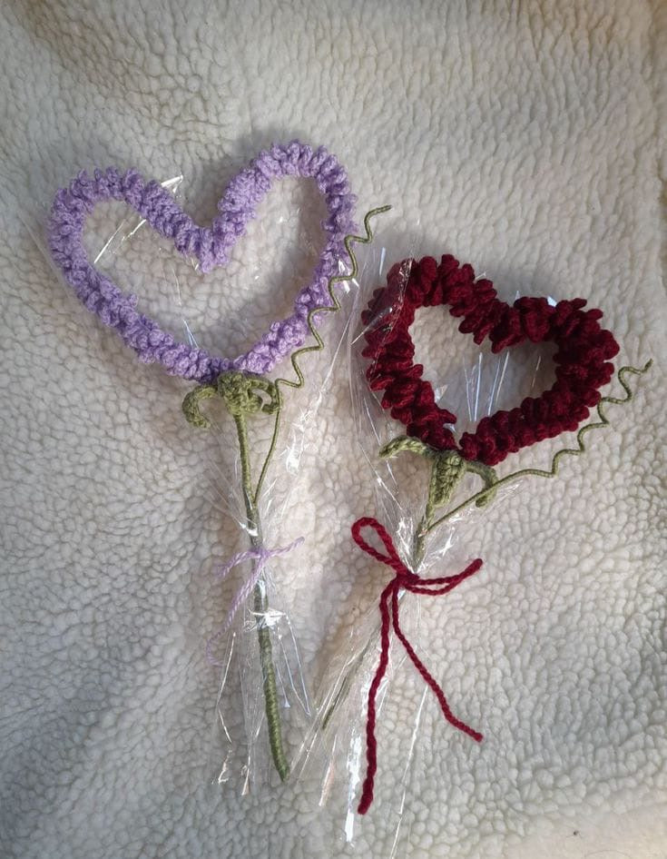 Crochet heart shaped bouquet